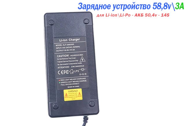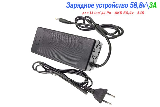 Зарядное устройство для литий-ионной, Li-ion, Li-Po аккумуляторной батареи. Это зарядное устройство имеет выходное напряжение 58,8 V с током заряда 3A подходит для сборок Li-ion - 14S. Стоимость: Зарядное устройство для Li-ion\ Li-Po АКБ 14S output 58,8V 3A на данный момент 1258 руб.