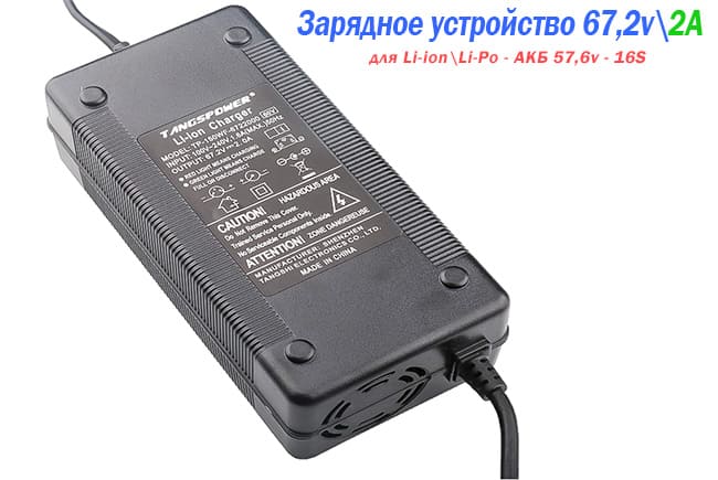 Зарядное устройство для литий-ионной, Li-ion, Li-Po аккумуляторной батареи. Это зарядное устройство имеет выходное напряжение 67,2 V с током заряда 2A подходит для сборок Li-ion - 16S. Стоимость: Зарядное устройство для Li-ion\ Li-Po АКБ 16S output 62,7V 2A на данный момент 1138 руб.