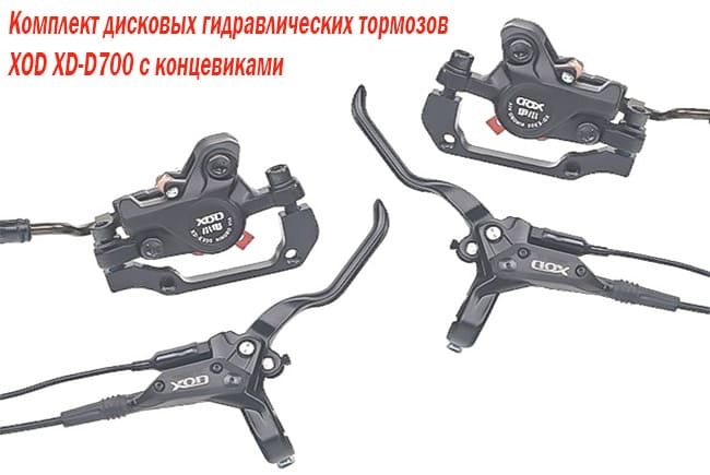 Комплект дисковых гидравлических тормозов XOD XD-D700 с концевиками. Тормозные диски и болты в комплект не входят.