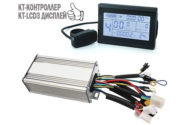 Набор для электро-велосипеда состоит из редукторного мотора марки MXUS XF15R он устанавливается на заднее колесо его номинальная мощность составляет - 500W максимально возможно при 48V = 1100Вт. В комплекте контроллер KT 48В 500Вт 20/22/25А для этого мотор колеса и контроллера потребуется аккумуляторная батарея на 36/48В этот контроллер поддерживает PAS assistant. В комплекте идёт информационный дисплей KT LCD-3 тип LCD дисплей панель управления. Элементы управления ручка газа или курок на выбор. Стоимость такого набора для самостоятельной сборки электро-велосипеда на данный момент составляет 18300 рублей.
