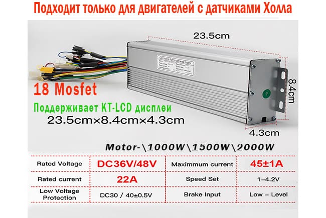 KT 36V-48V-54V 18 mosfet 22-45A подходит для бесщеточного двигателя 1000\1500\2000 W 48\54+ В Универсальный (поддерживает оба напряжения)