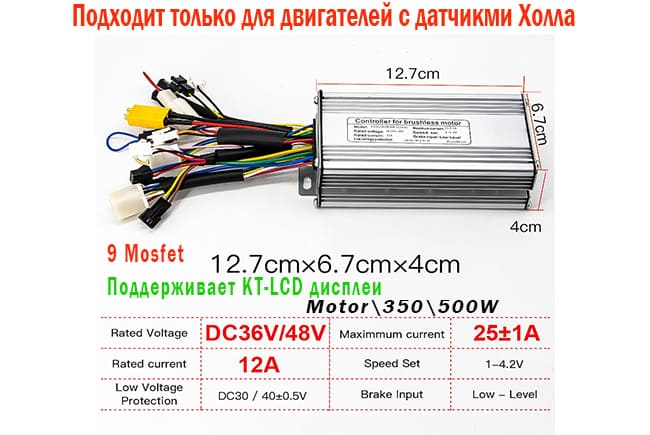 KT 36V-48V-9mosfet 12-25 A подходит для бесщеточного двигателя 350/500 Вт 36 \ В 48 В Универсальный (поддерживает оба напряжения)