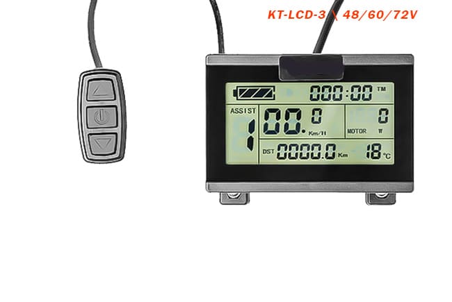 Качественный Многофункциональный дисплей KT LCD-3 48/ 60 /72 В компьютер, имеет многочисленные гибкие настройки, на дисплее отображается вся необходимая информация о текущих характеристиках электровелосипеда. Дисплей оснащён удобным выносным управлением PAS assistant, а также включением и управлением настройками lcd дисплея.