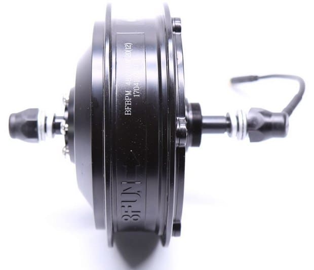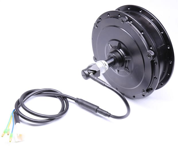 Мотор под трещотку устанавливается на зад и имеет расстояние между дропаутами 135мм. Он рассчитан на скорость 35-45км/час в зависимости от напряжения, диаметра обода и нагрузки. Имеется крепление под дисковый тормоз.