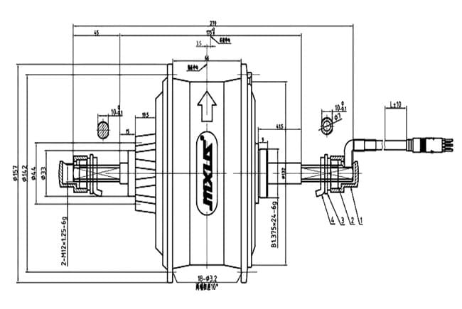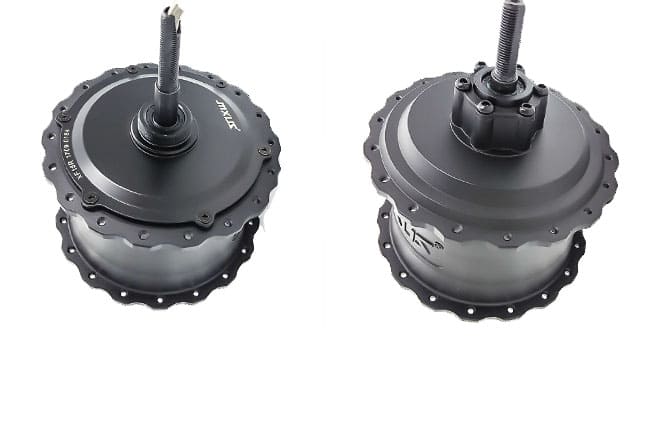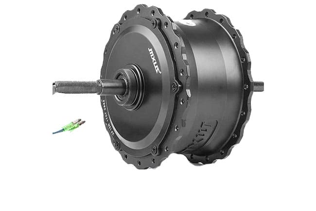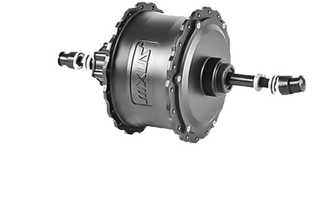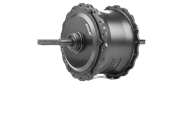 Мотор под трещотку устанавливается на зад и имеет расстояние между дропаутами 175/190мм. Он рассчитан на скорость 40-50км/час в зависимости от напряжения, диаметра обода и нагрузки. Имеется крепление под дисковый тормоз.