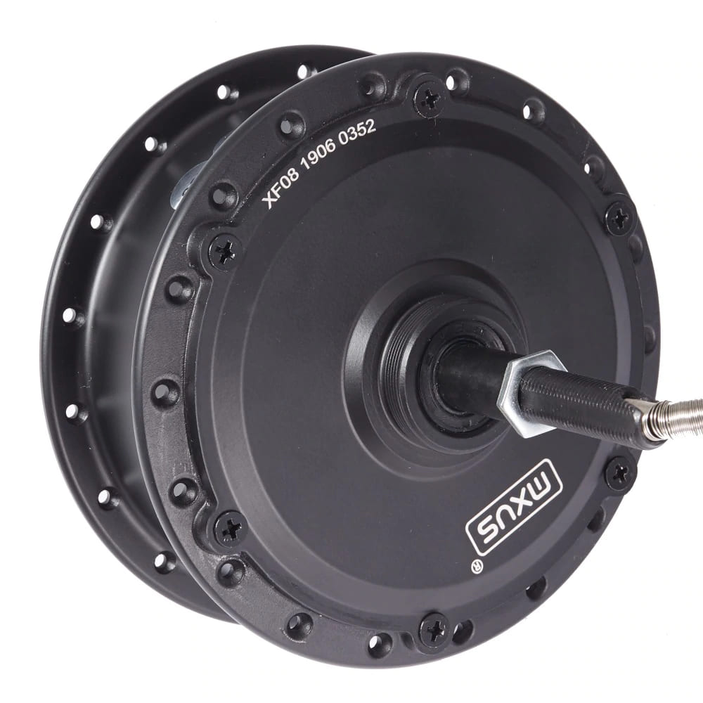 Мотор-колесо MXUS XF08 имеет встроенный понижающий планетарный редуктор с обгонной муфтой, за счет чего обладает хорошим крутящим моментом, а при движении накатом не создает сопротивления движению.