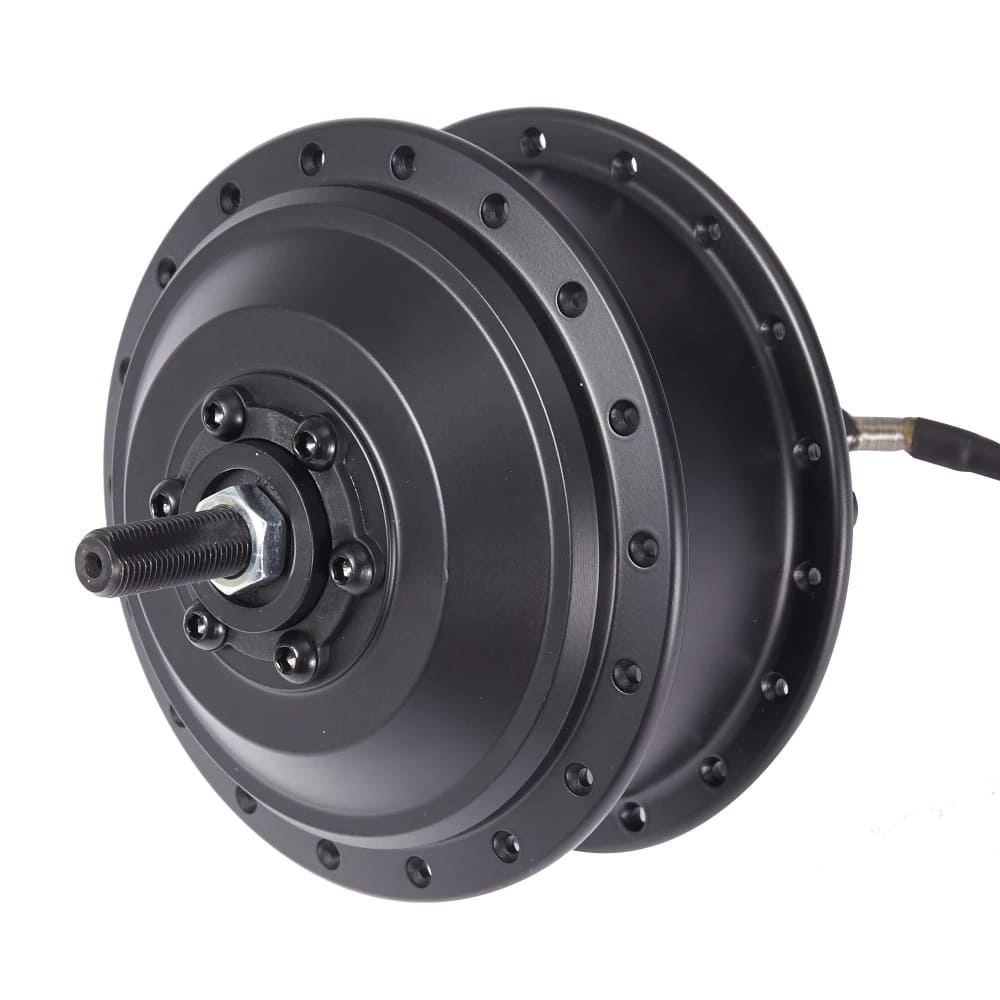 Мотор под трещотку устанавливается на зад и имеет расстояние между дропаутами 135мм. Он рассчитан на скорость 25-35км/час в зависимости от напряжения, диаметра обода и нагрузки. Имеется крепление под дисковый тормоз.