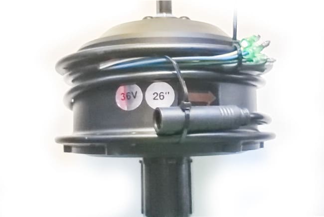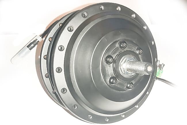 Мотор под кассету устанавливается на зад и имеет расстояние между дропаутами 140 мм. Он рассчитан на скорость 25-35км/час в зависимости от напряжения, диаметра обода и нагрузки. Имеется крепление под дисковый тормоз.