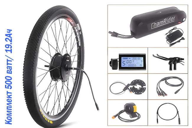 Набор для электро-велосипеда состоит из: K1|Mxus|500w он устанавливается на по запросу - заднее колесо \ переднее его номинальная мощность составляет - 500W максимально возможно при 54,4V = 1300Вт. В комплекте контроллер KT 48В 500Вт 20/22/25А, литий ионный аккумулятор в корпусе 48v | 13s4p | 19,2 ah,li_ion | 21700 | 4800mah,акула,35.5*9*11.3 см | вес 5.1 кг,ЗУ 54.6v | 4A в комплекте на выбор - V12L - d12L - BZ-10C PAS assistant. В комплекте идёт информационный дисплей KT LCD-3 тип LCD дисплей . Элементы управления ручка газа или курок на выбор. Стоимость такого набора для самостоятельной сборки электро-велосипеда на данный момент составляет 49500 рублей.