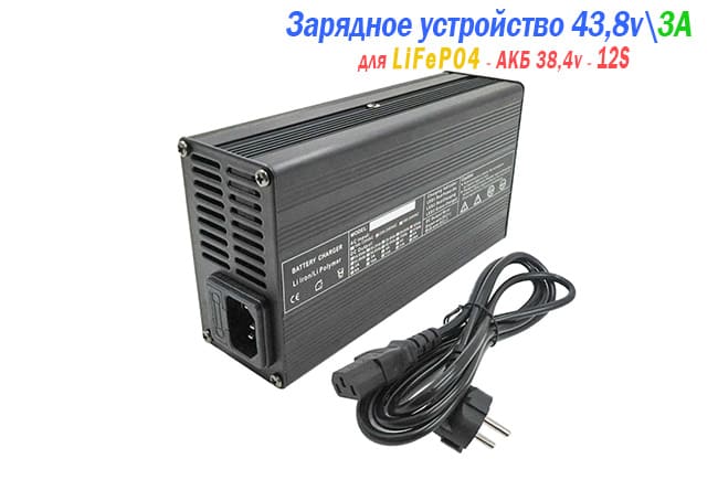 Зарядное устройство для LiFePO4, LFP -- . Это зарядное устройство имеет выходное напряжение 43,8 V с током заряда 3A подходит для сборок LiFePO4 - 12S. Стоимость: Зарядное устройство для АКБ LiFePo4 12S 43,8v на данный момент 2354 руб. Принцип заряда CC/CV