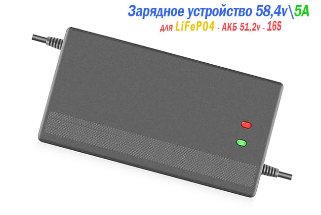 Зарядное устройство для аккумуляторных батарей на литий-железо-фосфатных аккумуляторах. Это зарядное устройство имеет выходное напряжение 58,4 V с током заряда в 5A подходит для LiFePO4 - 16S сборок. Стоимость Зарядное устройство для АКБ LiFePo4 16S 58,4v на данный момент 2200 руб.
