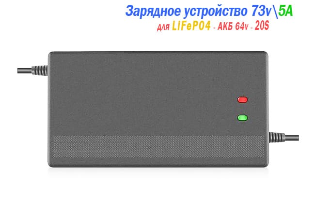 Зарядное устройство для LiFePO4, LFP . Это зарядное устройство имеет выходное напряжение 73 V с током заряда 5A подходит для сборок LiFePO4 - 20S. Стоимость: Зарядное устройство для АКБ LiFePo4 20S 73v на данный момент 2200 руб. Принцип заряда CC/CV