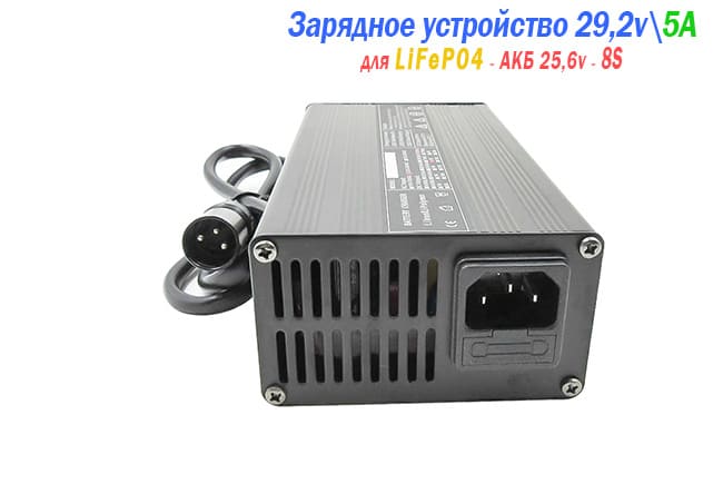 Зарядное устройство для LiFePO4, LFP . Это зарядное устройство имеет выходное напряжение 29,2 V с током заряда 5A подходит для сборок LiFePO4 - 8S. Стоимость: Зарядное устройство для АКБ LiFePo4 8S 29,2v на данный момент 2806 руб. Принцип заряда CC/CV