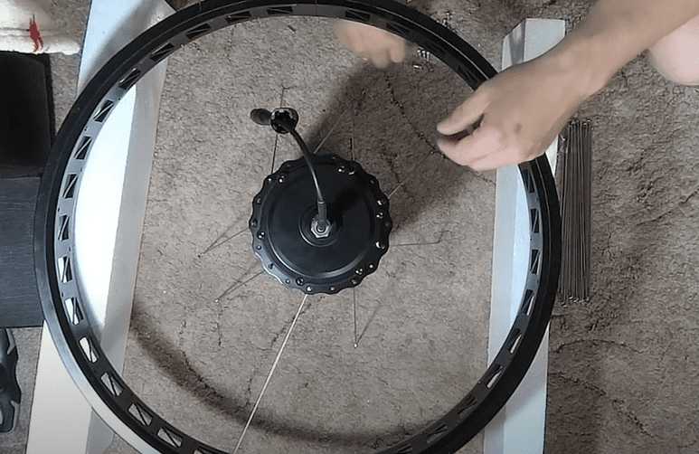 После сборки необходимо отбалансировать колесо подтягивая или отпуская спицы для достижения масимальной ровности и устранения биения колеса