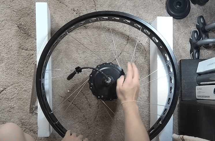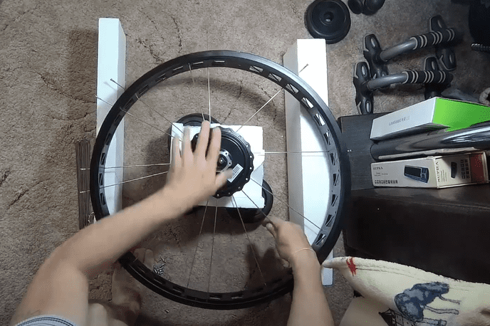 Самостоятельная сборка электровелосипеда на базе китайского фэтбайка - этап - Заспицовка мотора bafang в обод фэтбайка