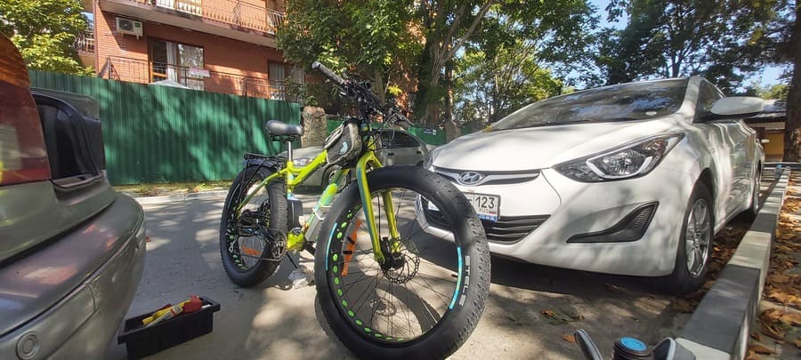 Итак, этот проект завершён в середине лета 2020 года и накатано более 1000 километров по городу Москва и километров 200 по горам Геленджика, я брал электрофэтбайк на отдых, поездка была на своём автомобиле и так как у меня седан, хоть и с большим объёмом багажника, но для того чтобы засунуть его туда мне пришлось его значительно подразобрать.