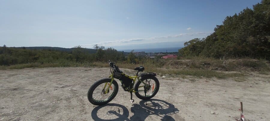 На следующий день я уже собрал электрофэтбайк и немного прокатился на ближайшую гору, байк показал себя отлично и тянул в гору очень бодро, а к вечеру мы уже встречали закат на море.