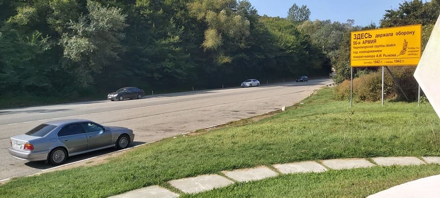 При въезде в горный массив Краснодарского края остановились у памятного места где держала оборону 56 армия Черноморской группы войск в 1942-1943 году