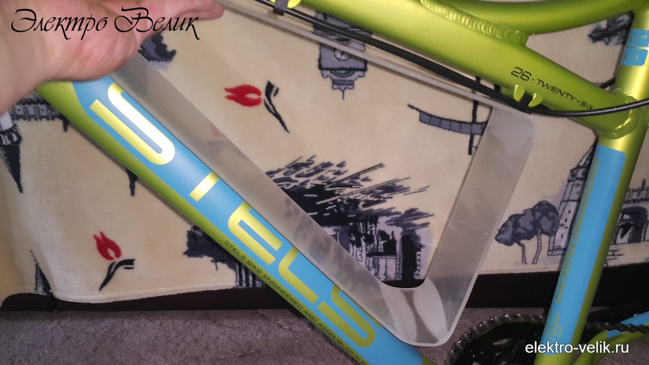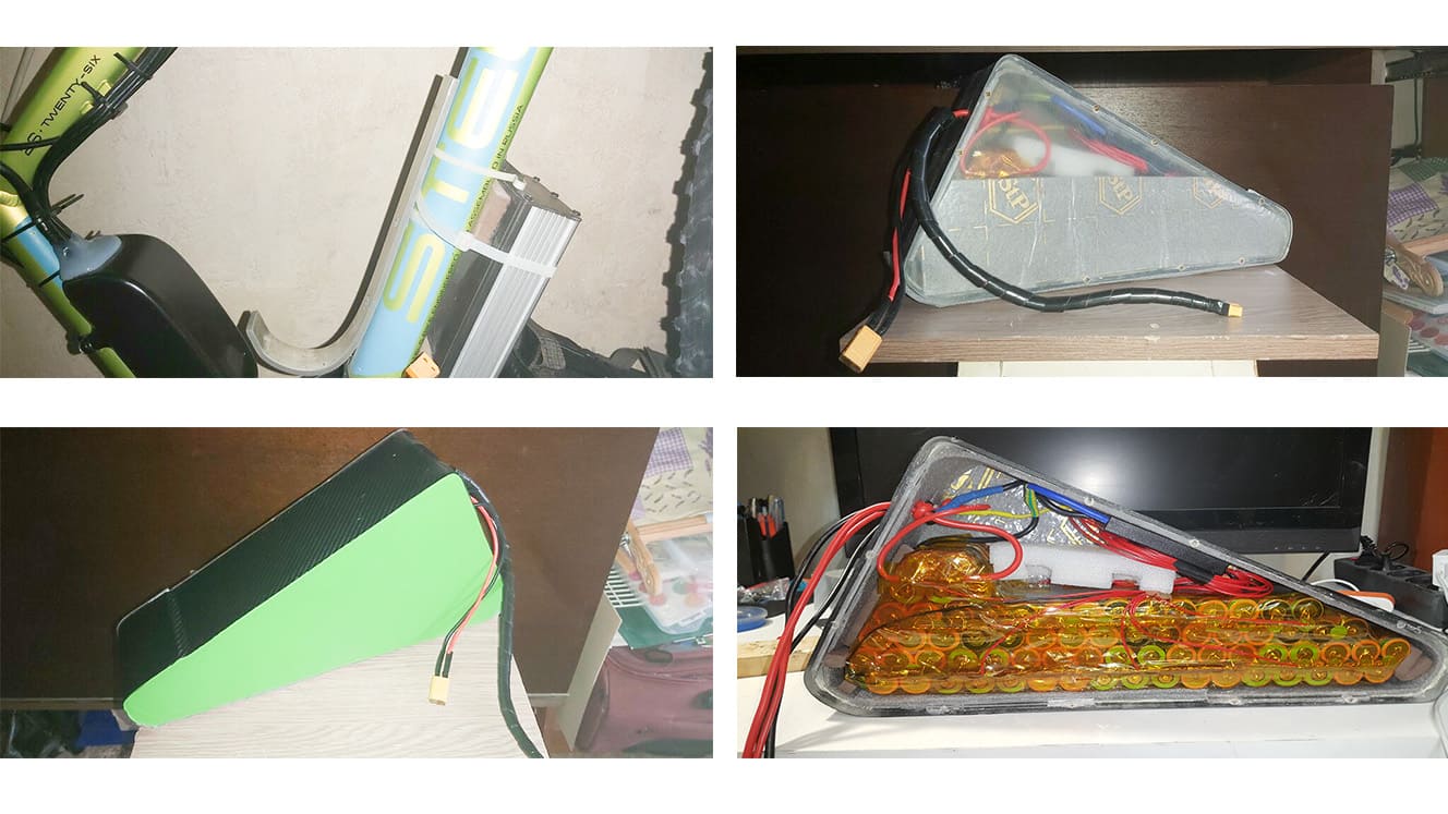 Аккумуляторная батарея крепится на раму в место держателя для воды через направляющую что позволяет быстро снимать и ставить аккумулятор. Стоимость корпуса на момент осень 2020 года 3422 рубля включая доставку но может меняться.