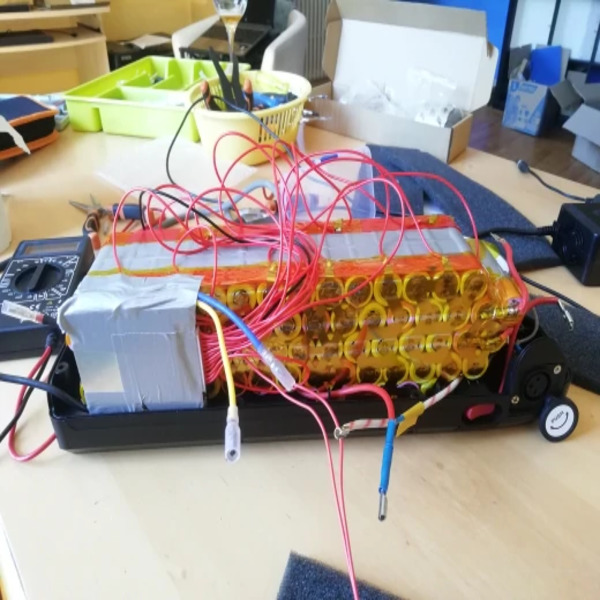 Вот так выглядит собранный аккумулятор на электровелосипед который располагается внутри треугольника рамы, что даёт правильную развесовку и велосипед, когда требуется его переносить в руках не тянет назад как было это у меня ранее так как аккумулятор располагался на багажнике сзади плюс мотор колесо, сейчас гораздо удобнее и выглядит на мой взгляд более качественно, фото для сравнения. Перейти к статье самостоятельной сборки аккумуляторной батареи 14s на электровелосипед.