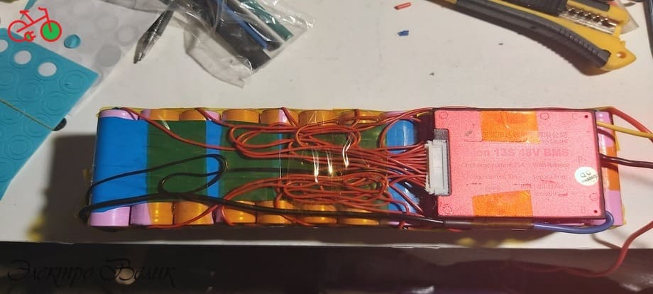 Это одна из первых сборок электровелосипеда с установкой мотора mxus на 500 ватт, для этого была собрана аккумуляторная батарея 13s3p позже 13s4p на ячейках 18650 при тестировании показатели по скорости составляли в районе 40-45 км\ч с запасом хода в смешанном стиле примерно 40 км, а на рычажке газа в районе 25 км.