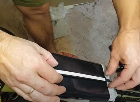 Для чуть лучшей герметичности короба нанесу термоклея. Подключу аккумулятор, и линию от понижающего модуля.