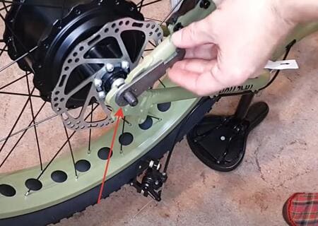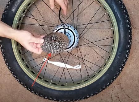 Гайка кассеты закручивается по часовой стрелке, а подтягиваю при помощи съёмника с прорезью, затягиваю с небольшим усилием. Вот теперь мотор колесо полностью готово к установке.