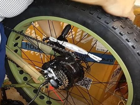 Что бы у цепи не было зацепов за раму добавил шайбу со стороны мотора.