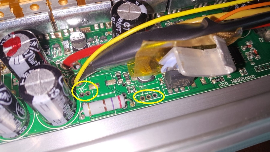 Вот здесь находятся аж два шунта, обычно один, залудив которые можно немного поднять мощность контроллера.
