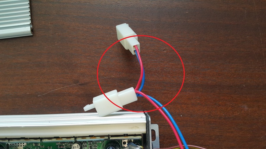 - А к этому разъёму можно подключить фару, но на выходе весь вольтаж батареи правда с минимальной силой тока, фару до 5 ватт должен потянуть при подключении более мощной может сгореть понижающая плата в контроллере.