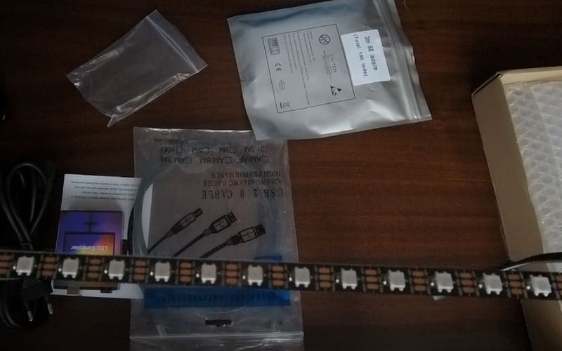Светодиодная лента упакована в прочный пакет, я заказывал для телевизора 40 дюймов и ленты должно быть 3 метра. При заказе можно выбрать 30 или 60 светодиодом на погонный метр где 30 немного дешевле, но для лучшего визуального эффекта я заказал 60 светодиодов…