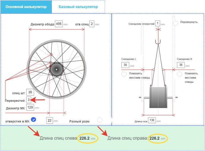 Результат длины спиц по моим размерам такой: